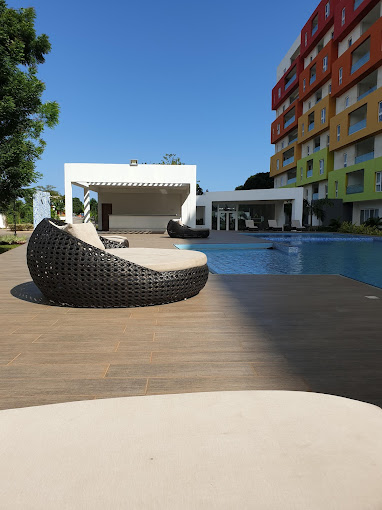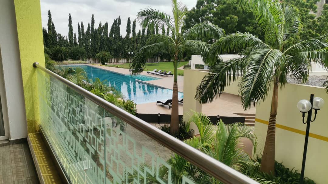 Breathtaking views: Step out onto your spacious balcony and enjoy the serene poolside view.