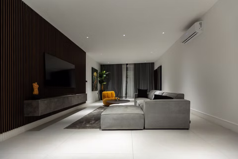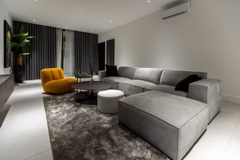 Spread across a generous 2,690m², the apartment accommodates up to 5 guests and features three stylish bedrooms, each with a private en-suite bathroom, plus a separate guest toilet for added convenience.