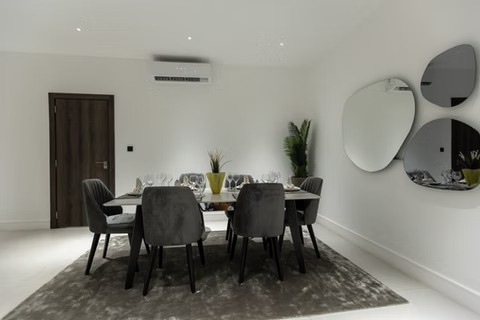At the heart of the apartment, the 56m² living area provides an inviting space to unwind or entertain, complemented by a bright and airy 22m² dining area. The 23m² kitchen is fully equipped for guests who enjoy cooking or entertaining at home.